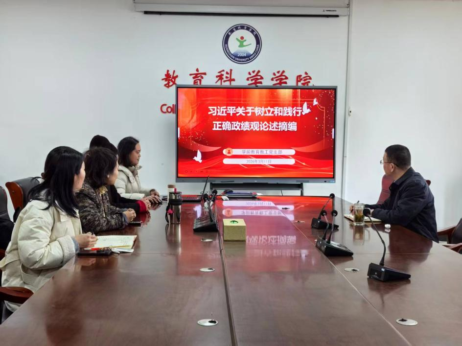 311日,学前教育教工党支部书记王永杰主持召开专题学习会,部署学习教育工作,并带领全体党员教师学习《习近平关于树立和践行正确政绩观论述摘编》。会议强调,全体党员教师要深刻认识树立和践行正确政绩观的重要性,原原本本学、联系实际学,切实把思想和行动统一到中央要求上来,为后续学习实践奠定坚实思想基础。