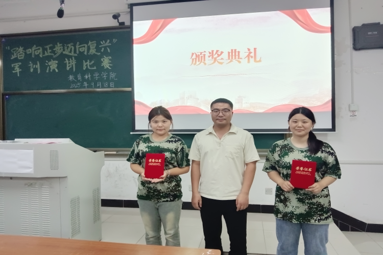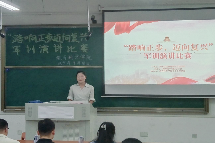 为纪念中国人民抗日战争暨世界反法西斯战争胜利80周年,扎实推进军训期间的国家安全教育工作,9月18日,教育科学学院在文渊楼1304室隆重举办了“踏响正步,迈向复兴”军训演讲比赛。